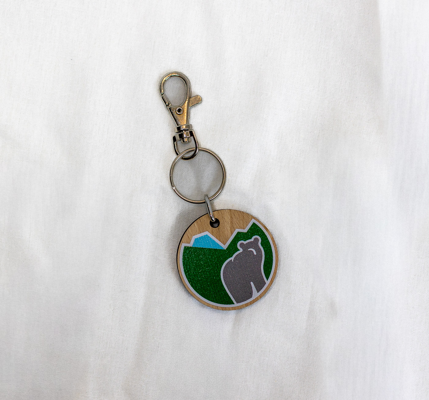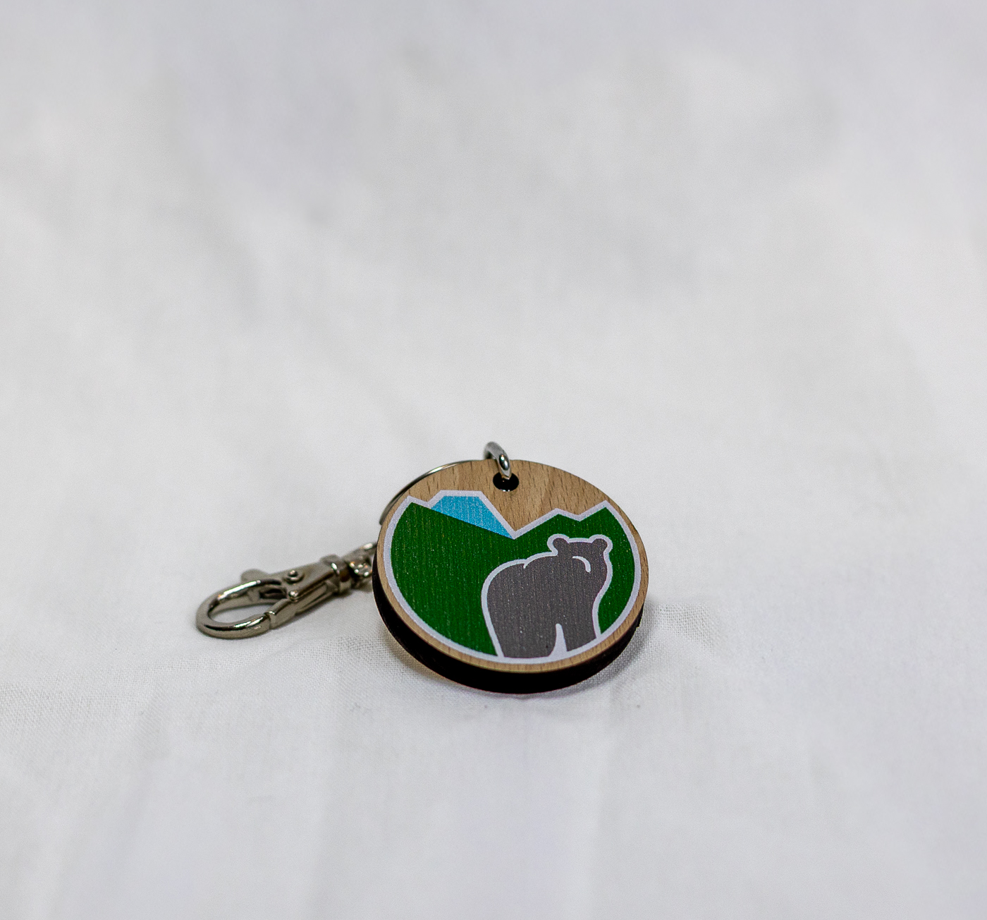 Portachiavi rotondo in legno con logo del Parco con diametro 4 cm.